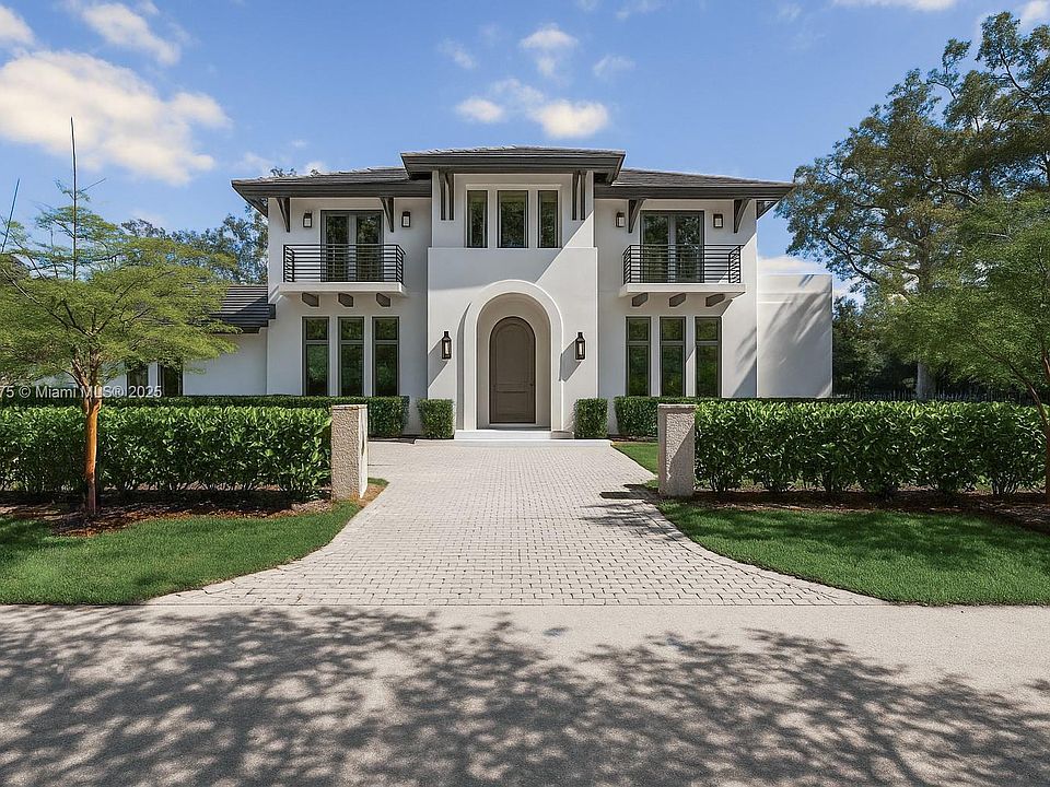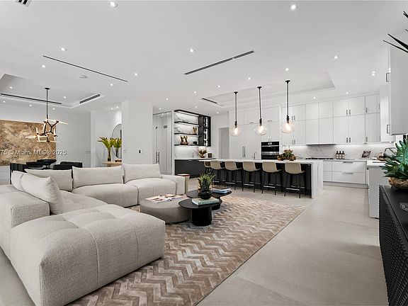 Brand-new construction by Pacheco Architecture, this contemporary-modern estate offers 6 beds/7.5 baths, and 7,142 sq. ft. of total construction. The grand entry with double-height ceilings opens to expansive living spaces. Massive floor-to-ceiling sliding doors lead to a covered terrace w/ fully equipped outdoor kitchen & private pool. The chef’s kitchen features top-of-the-line appliances, and an elevator connects to 4 upstairs bedrooms, including a luxurious master suite with private balcony, spa-like bath, and custom LED-lit closet. Features include a wine cellar, wet bar, 3-car garage, smart home tech, gates & lush landscaping. Perfectly located near top Miami schools, shops, dining and entertainment. Home is ideal for upscale family living and entertaining.