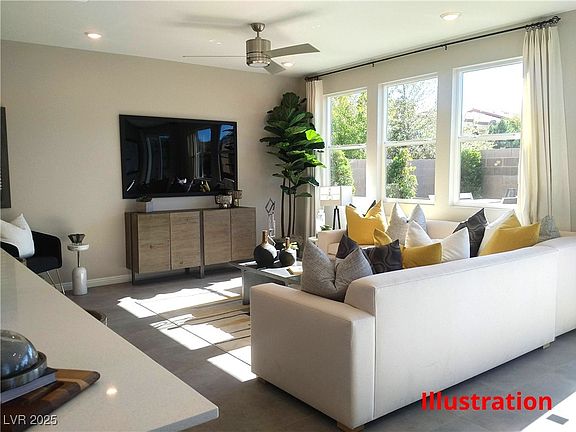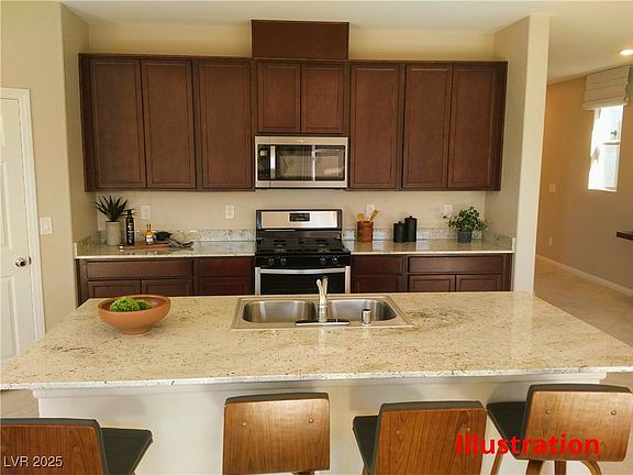 **New Home in Gated Sage Glen Community!** Step into your dream home, never been lived in and still has that new home smell! Stunning property features 4 bedrooms + loft upstairs, & 1 bedroom DOWNSTAIRS with full bath. Open floor plan with 9-ft ceilings on the first floor. Stylish kitchen equipped w/ Whirlpool stainless steel appliances, oversized island for meal prep and entertaining, 42" cabinets for ample storage, and a walk-in pantry. Kitchen overlooks large family room, 8'x8' sliding glass door leads to backyard with pavers, and large windows offer lots of natural sunlight. Enjoy luxurious bathrooms w/ quartz counters. Exterior has Tuscany brick pavers in the driveway. Finished 2-car garage, with tankless water heater and epoxy-coated floor. Conveniently located near major shopping centers and restaurants on Rainbow Blvd and the Strip, this home combines luxury, comfort, and accessibility. Don’t miss this opportunity to make it yours—schedule a viewing today!