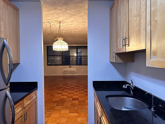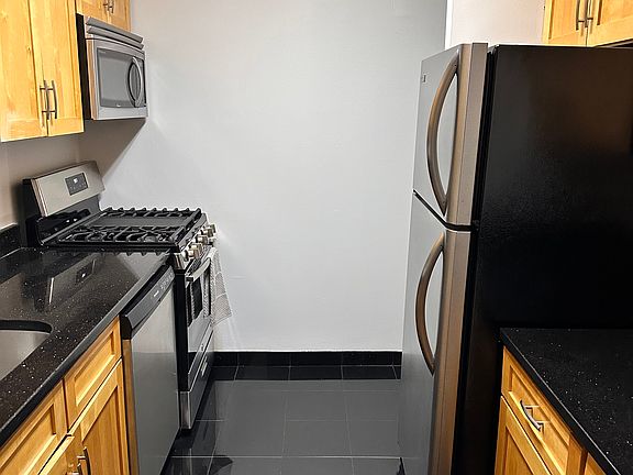 Open kitchenWalk-in closetMove-in ready apartmentNatural lightStainless steel appliancesLightwood cabinetsBlack granite countertops