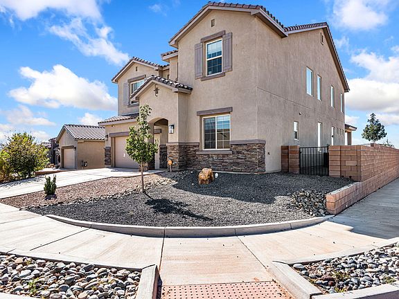 PAID OFF PID! Beautiful home situated on a spacious corner lot that sits higher than neighbors for added privacy. Step inside to tall ceilings, abundant natural light, and stunning Sandia views. The owner's suite features elegant trey ceilings, his and hers closets, and a walk-in shower. Enjoy a bonus office, large loft, and extra storage under the stairs. BRAND NEW carpet downstairs and a laundry room with utility sink add convenience. The landscaped backyard offers a dog run, water feature, and pergola--perfect for relaxing or entertaining. In a great location near shopping, top-rated schools, and hospital!