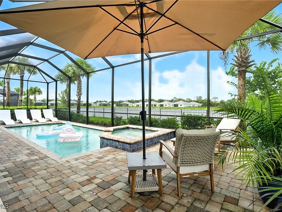 Luxury living meets resort lifestyle — this home is designed for entertaining and relaxation from the moment you step inside. Over 2,800 sq. ft. of sleek design, high-end finishes, and seamless indoor-outdoor living in one of Fort Myers’ hottest 55+ communities! A home that truly has it all — chef’s kitchen, resort amenities, and a pool & spa just steps from your lanai. Better than building: priced below new construction with every detail already upgraded. The chef’s kitchen impresses with gas burners, built-in appliances, wine fridge, and oversized island. Elegant details include beamed tray ceilings, wainscoting, and accent walls. Pocket and zero-corner sliders open seamlessly to the screened saltwater pool and spa, perfect for entertaining or relaxing. The owner’s suite features a dropped tray ceiling, custom accent wall, and oversized walk-in closet. A flex room, 10-ft ceilings, upgraded garage floor, and new fencing add convenience and value. Your new community showcases a clubhouse, pool, fitness, bocce, pickleball, and on-site restaurant. —just minutes to shopping, dining, downtown Fort Myers, and SWFL beaches.