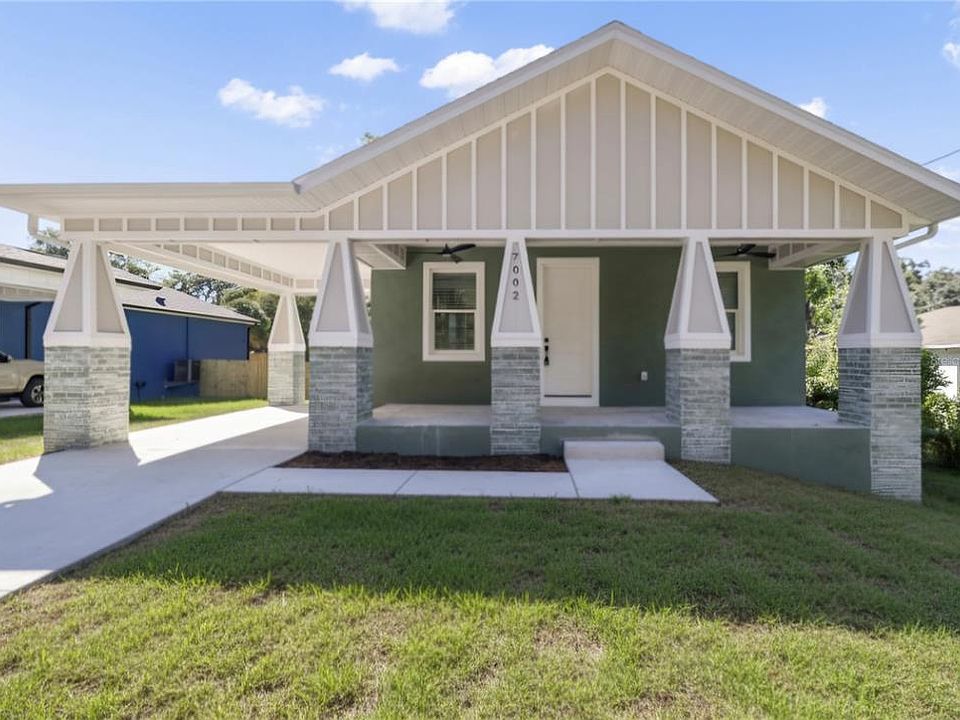Charming NEW CONSTRUCTION bungalow in Old Seminole Heights on HUGE FULLY FENCED LOT! Welcome to this beautifully crafted 3-bedroom, 2-bathroom new construction bungalow. Blending timeless charm with modern convenience, this home offers the perfect balance of comfort, style, and functionality. Step inside to discover an open-concept layout filled with natural light, high-quality finishes, and thoughtful details throughout. The spacious living area flows seamlessly into a modern kitchen featuring brand-new stainless-steel appliances, ideal for both everyday living and entertaining. The primary suite includes a private en-suite bathroom with walk in shower, double vanities and generous closet space, while two additional bedrooms allows flexibility for guests, home office, or family needs. Both bathrooms are outfitted with contemporary fixtures and elegant tile work. Enjoy your morning coffee or evening unwind on the welcoming front porch or the peaceful back porch overlooking the large backyard perfect for outdoor gatherings, gardening, endless possibilities. A convenient carport adds extra functionality and protection from the Florida weather. Inside laundry and not in a flood zone. Located just minutes from local eateries, craft breweries, parks, and downtown Tampa, this home offers the best of Seminole Heights living in a low-maintenance, move-in-ready package. Everything is brand new from the foundation to the roof giving you peace of mind for years to come. Don't miss the opportunity to live in a new construction in one of Tampa's most vibrant and historic communities! Call to schedule a showing and ask about out preferred lender incentives to assist with closing costs or rate buy down options!