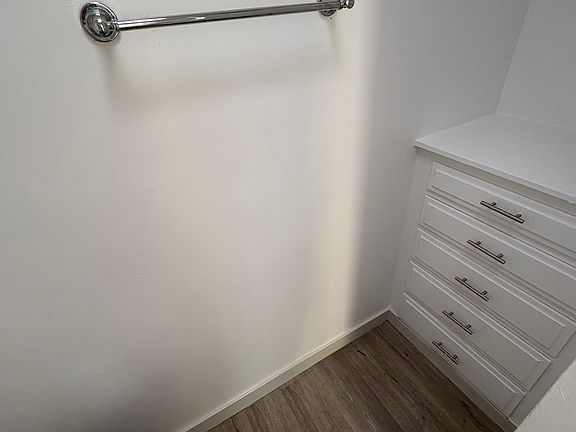 Modern bachelor unitWaterproof wood laminate flooringTwo closets