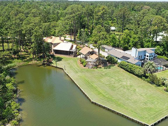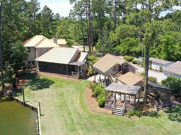 Step into waterfront paradise with this spectacular listing on Robert's Bayou! Offering over 250 feet of bulkheaded water frontage, this property is a haven for those seeking tranquility and natural beauty. The main attraction is the stunning 3-bedroom, 2.5-bathroom home, complemented by a separate studio apartment above the workshop/shed, both showcasing breathtaking views of the bayou. As you enter the main home, you're greeted by a spacious open-concept floorplan featuring a wood-burning fireplace, high ceilings, and a formal dining space. The kitchen is a chef's dream with conveying appliances, granite countertops, a beautiful tile backsplash, and a ceiling fan to keep things cool while you cook. The primary suite is a retreat unto itself, boasting a fabulous double tray ceiling, a luxurious jetted tub, a separate shower, a double vanity with a seating area, a large walk-in closet, and a water closet for added privacy. Upstairs, discover ample built-in shelving, a large attic/storage space, and two additional bedrooms along with another bath. Outside, the property truly shines with a large screened-in patio and covered seating areas next to the shed, all overlooking a beautifully landscaped backyard with a sprinkler system. Keep an eye out for dolphins, pelicans, and other wildlife that frequent the area! With a new well pump installed in 2024, this property offers both luxury and practicality. Don't miss out on the opportunity to make this unique waterfront oasis your own—schedule a showing today!