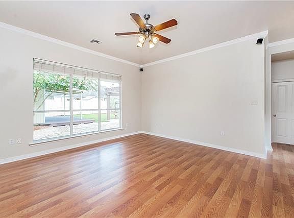 Cozy 3BR/2BTH home with NO CARPET! This home features new flooring and paint throughout with exceptional upgrades in the backyard. The roomy kitchen opens to the well-lit living area wired for surround sound; which is great for entertaining. Lovely master suite with a spa tub, separate shower, and spacious walk-in closet. The backyard boasts a privacy fence, a wired 16x20 workshop/he-she shed with an A/C unit, and a separate pergola with seating. This home won't last long!