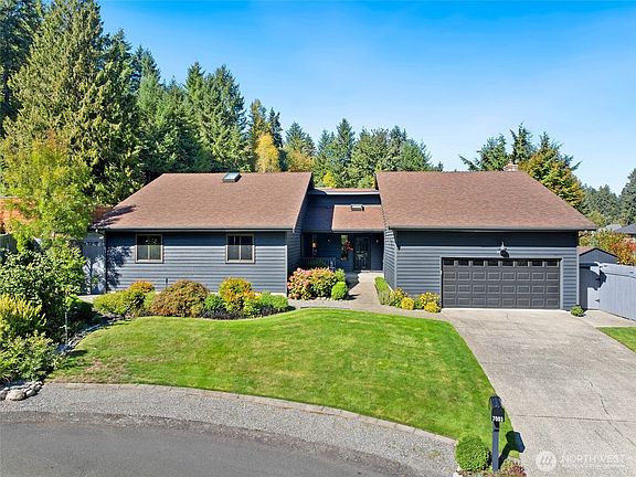 Beautifully landscaped 3-bedroom rambler with den (potential 4th bedroom) in a quiet cul-de-sac! Enjoy a bright living room with woodstove, spacious kitchen with dining nook, and dining room that opens to the family room. Vaulted ceilings, newer carpet & vinyl plank flooring, and abundant natural light throughout. Primary suite plus 2 additional bedrooms and flexible den. Oversized 2-car garage with workshop space. French doors open to a covered deck overlooking the stunning, fully fenced backyard. Nearly 1/3 acre with ample parking and 2 outbuildings.