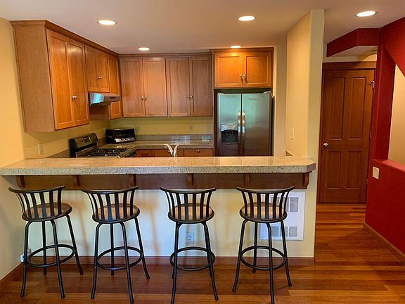 Unique townhouse available in November! It is located within 2 blocks of PCC, Starbucks, and other Green Lake shops and restaurants in a quiet group of townhomes. This home's setup is quite unique with 2 master bedrooms located on separate floors, each with its own en suite bathroom. This works great for roommates. The top floor bedroom is quite large (fits a king bed)! The main floor has hardwood floors with a modern kitchen with stainless steel appliances and a gas cooktop. There is a 1 car garage that does has some extra storage space. Plus, there is a small fenced patio which is great for entertaining, especially in the summer.
