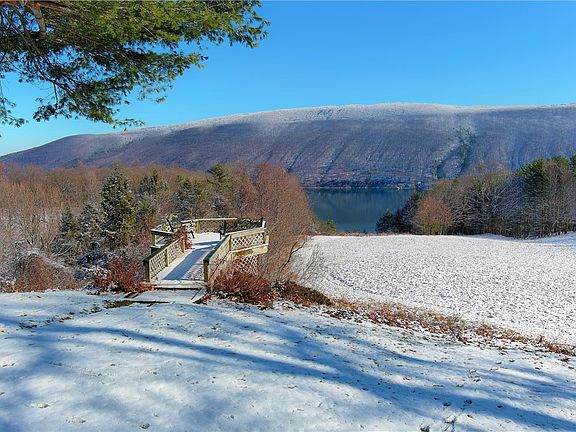 Over 25 acres with breathtaking Canandaigua Lake views! Totally private & located at the south end of Canandaigua Lake in the desirable Finger Lakes region! This French Country home is one-of-a-kind, perfect for an Airbnb or enjoy as your year round home. Desirable open concept floor plan with gas fireplace, custom cherry cabinets, quartz counters & dining area is what you've been looking for. Expansive deck with lake views, perfect for entertaining & charming glass conservatory to enjoy every season. 1st floor in-law suite possibilities, home office & mudroom. Spacious master with ensuite, 4 additional bedrooms & 2 full baths complete the 2nd floor. Two car attached garage with storage closets & full basement. The grounds showcase your own waterfall, private trails to hike or snowshoe, a pond, perennial garden & shed. Nature enthusiasts will enjoy the wildlife and tranquil setting. Minutes away from the public boat launch, Smith Boys Marina, wineries, breweries, & Bristol Mountain. Close to the village of Naples for dining & shopping. Delayed showings & negotiations. Showings start 1/22/23 at 12pm. Offers to be in by 1/25/23 at 4pm.