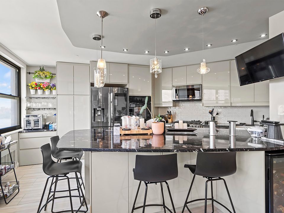 The chef’s kitchen opens seamlessly to spacious living & dining areas - perfect for both everyday comfort and effortless entertaining. The primary bedroom features an en-suite half bath, a large walk-in closet, and a cedar-lined closet that adds stylish and functional storage. Enjoy elevated Hudson River & NYC skyline views from this high-floor home, paired with a bright, airy ambiance.