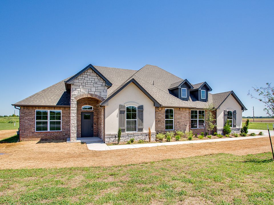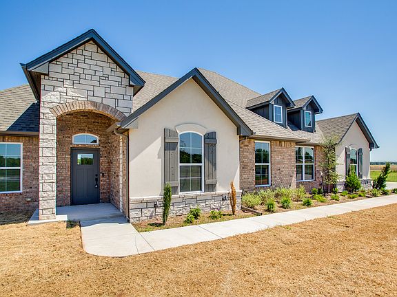 This unique floor plan is the only one like it going into the new neighborhood, Chisholm Ranch, as of now. The "Meadowlark" greets you with a huge covered front porch, cathedral ceilings in the large open floor plan living area. With four true bedrooms plus a study and three full baths, this plan can accommodate almost any family. The back of the home faces the East and is lined with windows allowing tons of natural light. The covered patio and front covered porch are both oversized. The attached three car garage is side loading, opening to the North. Unique metal awnings, just enough brick to feel traditional, but added siding to create the wanted farm house look, results in a beautiful curb appeal complete with a landscaping package and lots of land, as it sits on .83 acres. The living/kitchen areas feature open concept and are complete with large island, gas cook top, custom cabinetry, to the ceiling, wood-look tile, solid countertops - just to name a few. The garage entry opens to an oversized mud room with access to your utility room. This truly is a fabulous floor plan with space galore, coming in over 2500+ sq ft! Call for more information.
