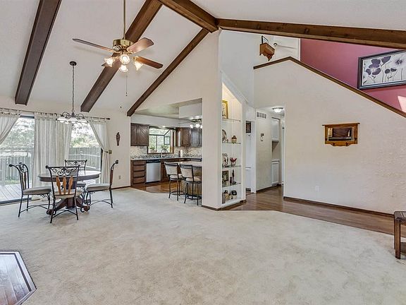 You will love coming home to this warm and inviting 1 1/2 story complete with a lovely living room that welcomes each guest and features carpeting, vaulted ceiling, dramatic fireplace, large window with window seat, decorative shelving, and ceiling fan, formal dining room with carpeting, vaulted ceiling, chandelier, and sliding glass door to the deck to make those summer barbecues a breeze, and cooking will be a pleasure in this fabulous kitchen with wood flooring, lazy susan, tile backsplash, under cabinet lighting, breakfast bar, and all the appliances remain. This main floor also features two spacious bedrooms and a full bathroom. Spend peaceful nights in this massive master suite complete with large windows, carpeting, vaulted ceiling with ceiling fan, skylight, walk-in closet, and private bathroom with his and her sinks and a walk-in shower. Enjoy just hanging out in the finished basement complete with family room with tile flooring, recessed lighting, wet bar, and Woodburning stove. This lower level also includes a full bathroom, a spacious fourth bedroom, and ample storage space! Sit back and relax out on the deck overlooking the private backyard with mature trees and dog run! Hurry, this one will not last long!