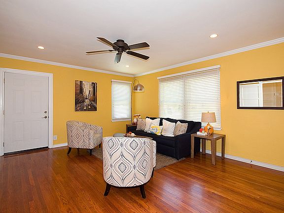 Prepare to be charmed by this updated 4 bedroom and 2-bathroom home located on a pride of ownership street. Come make yourself at home in the expansive living room that opens to the kitchen and features recessed lighting and hardwood flooring. Admire the granite countertops, stainless steel appliances inc. a French Door Refrigerator for a timeless look - letting the chef of the home move easily from task to task. The master suite offers a private bathroom, spacious closet w/Milk Glass doors & French doors that open to the covered patio and beautiful grounds. The two other bedrooms have that have built-ins, mirrored closet doors and hardwood flooring. The 2nd bathroom has custom tile throughout and bathtub and shower. With a cool color palette throughout that echoes a calming comfort, you'll have all that you need to make you never want to leave. Don't miss the DUAL zone A.C. and Heating systems, Newer Roof w/warranty, updated electrical panel, water heater & shaker panel doors. The separate laundry area includes the washer & dryer! The front yard landscaping was created with designer touches and utilizes indigenous environmentally friendly plants. The tranquil & majestic backyard is perfect for relaxing or entertaining with 2 covered patios, Rose bushes, fruit trees & hydrangeas! The garage has been converted into the 4th bedroom with French Doors and could double as an office, gym, guest room? Start your new lifestyle here & be centrally located to it all!