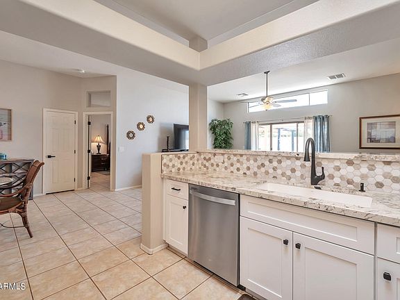 This home is move-in ready!! $5000 CREDIT FOR RATE BUYDOWN. Completely remodeled kitchen with white shaker cabinets, granite counters and decorative backsplash. SS appliances. Tile throughout home. Exterior freshly painted. Both bathroom just remodeled and include white shaker cabinets, granite countertops and new tile floors. Primary bathroom shower just had new glass shower door installed (not shown). Home has high ceilings - giving it a very open and spacious feel. Very large Primary bedroom w/walk-in closet. Low maintenance backyard. Quiet community close to freeways, shopping, and restaurants. Low HOA fee. RV parking for additional fee. Home has been used as vacation rental and is an excellent investment or primary residence. Furniture and rental history available upon request