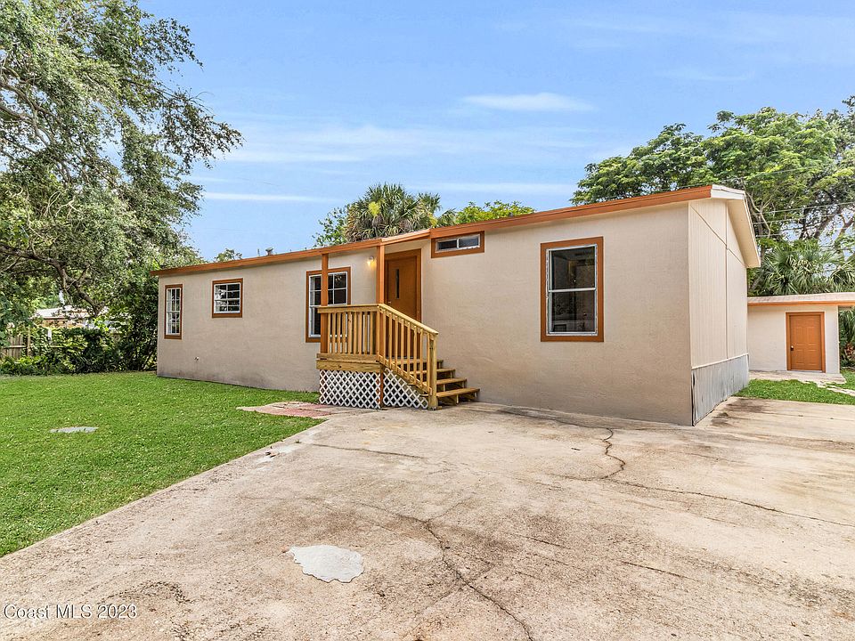 This inviting mobile home offers the perfect blend of comfort and functionality and the added benefit of owning land with NO HOA. The spacious living area is bathed in natural light, creating a warm and welcoming atmosphere. The master bedroom is a tranquil retreat with a garden tub. Indoor laundry hookups add convenience. Plus, there's an additional concrete block building with a bathroom and closet, ideal for a studio, home office or workshop. A BRAND NEW AC unit will be installed at closing, ensuring year-round comfort.