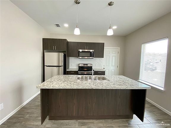 Located in a gated multi-family subdivision in McAllen on the border of Mission in Sharyland ISD. Modern open concept floorplan with wood like tile throughout. Kitchen with custom cabinets with modern granite and an island with lots of cabinet space. Spacious bedrooms with large closets. Large master bedroom with large bathroom with frameless glass shower and large closet. All units have their own private fenced backyard, this unit has a larger yard space. Stainless steel appliances included as well as washer and dryer. Water included and pet friendly!