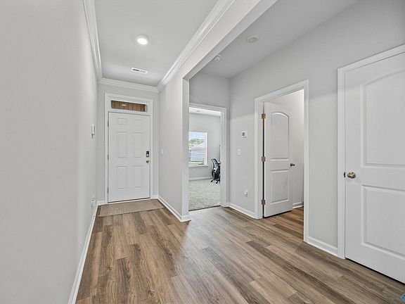 This spacious and open floor plan home is ideally located at the end of a cul-de-sac and its HALF ACRE lot is fully fenced. Featuring modern updates like granite counters, a walk in pantry, trim/crown molding, LVP flooring, smart home technology, it’s fully loaded! A great blend of new style with a warm and inviting feel. Three car garage that features plenty of space for vehicles and storage. Outside, a HUGE and FENCED landscaped backyard with a covered patio that is perfect for entertaining and enjoying time with friends and family. Perfectly located with close to access to Huntsville or Research Park, Twin Creeks sold out fast! There's a neighborhood pool, playground, walking paths!