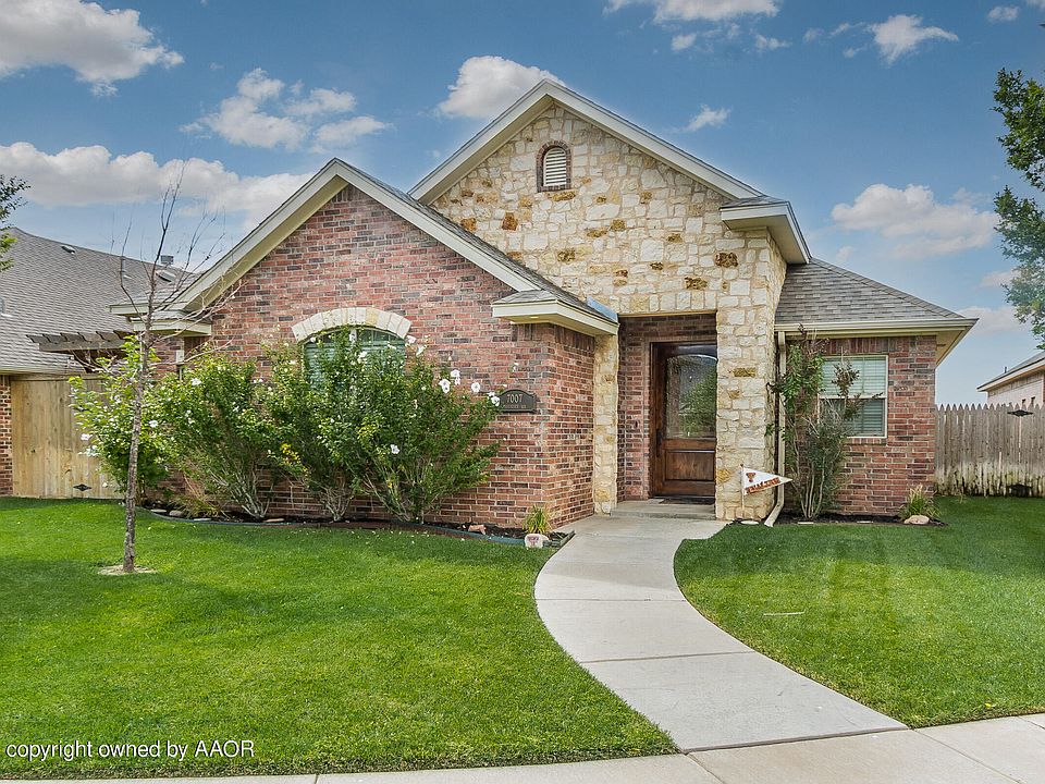 Stunning Comer Fielding garden home! Beautiful curb appeal with Austin stone accents. Features include an Austin stone corner fireplace, wood floors, and a beautiful copper vent hood. Isolated master bedroom has on suite with a jetted tub and separate walk in shower, double vanity areas and huge walk in closet with builtins. Spacious second and third bedrooms share a hall bath. Private office has built in desk perfect for working from home. Bonus room is set up for a media room or extra living space. Utility is separate and has a countertop and a mud bench feature. Backyard has a pergola and a separate grassy space fenced for dogs. The HVAC is new with extended warranty per seller. Surround sound in living, master, and bonus room.