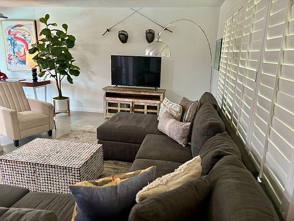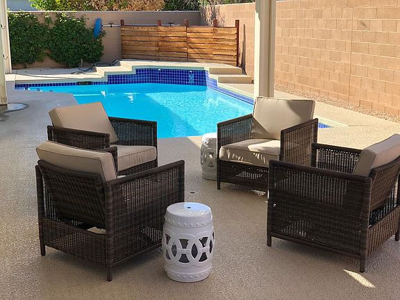 AVAILABLE NOW. This is a fully furnished home in the Tamarisk neighborhood of Rancho Mirage. You must be at least 30 years old to lease. Will consider a 6 month lease but prefer 1 year. Must have great credit. Great neighborhood! Walking distance to small grocery/convenience store, and walking trails. Close driving to dining, grocery, and all the great things the Coachella Valley has to offer. The house has a primary bedroom with bathroom, one smaller bedroom and another huge one. The dining room is very big and is surrounded by windows and views of the pool and loads of palm trees. It has enough room for an office set up if you like. The floors in the house are a concrete style for easy clean up. A small (up to 35 lbs.), house broken, quiet dog is ok with a $250 non-refundable deposit. Pool maintenance and gardener is included but utilities will go in your name (gas, electric, water and trash). Pool maintenance and gardener is included but utilities will go in your name (gas, electric, water and trash). A deposit for 3175 is due at signing plus the first month's rent.