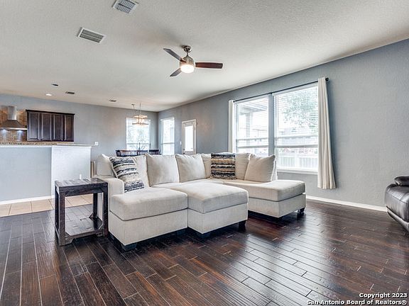 Welcome home! This home offers the ability to entertain on any scale with an open floor-plan with a nice back yard including a covered patio and deck! Once inside, you are met with an abundance of natural light flooding into the large kitchen which boasts granite counters and gas cooking. The kitchen opens to the adjacent breakfast area and large living room. Upstairs, you are greeted by a very large game room perfect for a movie night with family or a sleepover for the kids and their friends! The oversized master has separate his and hers walk-in closets and a well appointed bathroom with a dual vanity, shower and a separate garden tub! The backyard comes equipped with new turf for ease of maintenance and is perfect for grilling or enjoying libations and taking in a Texas sunset. This prime location offers easy access to shopping, dining and 1604!