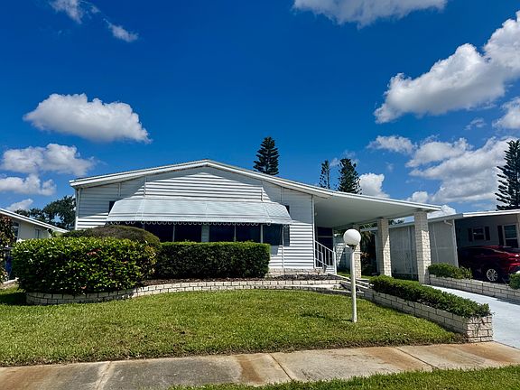 55+ Gated Community Living in Ridgewood Estates Welcome to this spacious 1989 manufactured home offering 1,344 sq. ft. of comfortable living in the sought-after, manned and gated community of Ridgewood Estates in Ellenton. Make sure to ask for our full Video Home Tour! This home has been maintained in its original condition and features an enclosed lanai with stacked vinyl sliding windows, perfect for year-round enjoyment. Inside, the thoughtful layout includes an inside laundry center with passthrough access to the guest bath and bedroom for convenience. The living room spans the full width of the home with bright southern exposure softened by front awnings, while the adjacent dining room with built-in cabinetry provides charm and functionality. The open-concept kitchen offers abundant cabinetry, a center island, generous counter space, and a large pantry closet. The primary suite also runs the full width of the home, with a walk-in closet and private ensuite bath featuring double sinks, a soaking tub, separate shower, and private water closet. Additional highlights include: Double-length carport with space for two vehicles. Storage shed. Peaceful walkway to the lake. Attractive curb appeal with brick landscape borders, carport pillars, and skirting. Ridgewood Estates is a pet-friendly 55+ community (up to two pets, max 25 lbs each) that allows subleasing with approval. All residents must pass a background check and meet qualifications ($50 fee per person / Canadian Residents $75 fee per person). This home is part of a land lease community with a monthly lot rent of $1,175 that includes lawn maintenance. Conveniently located near shopping and dining, with easy access south to Sarasota/Bradenton or north to Tampa, plus airports in both directions. This home offers comfort, community, and convenience in a prime location-ready for your personal touches! Florida Life Mobile Home Sales, Inc. does not provide guarantees on the accuracy of this information or the condition of any properties. It is recommended that buyers conduct their own independent research and inspections. AGENT MUST SHOW BY APPOINTMENT