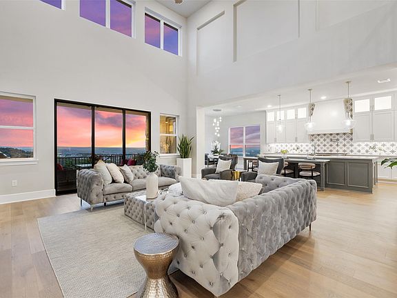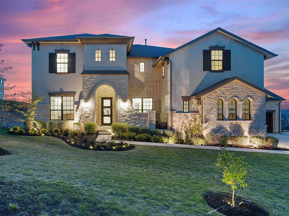 This Westin Homes masterpiece is located in the gorgeous Texas hill country with unobstructed views from nearly every inch of the property, yet still just minutes away from the livelihood that both Lakeway and Bee Cave have to offer. This beauty boasts 4 large bedrooms, 4.5 baths, 2 living spaces, laundry/mud room, soundproof media room, an incredible gourmet kitchen, formal dining room, dedicated study/office, guest quarters, covered back patio with built-in grill & fridge, plenty of storage space, and so much more! The 4 car garage has epoxy floors, providing the perfect canvas for a home gym, workshop, or something of the sort. The wide plank French oak flooring, 8" modern baseboards, extravagant winding staircase, rotunda ceiling & whole home finishes are a sight to see. The light & airy open-concept kitchen is accessorized with top of the line Wolf brand appliances, a Sub-Zero built-in refrigerator, timeless quartz countertops, a RO drinking water faucet, an oversized two-tier island, custom cabinetry extending from the floor to the ceiling, an incredible 8-burner gas range & large walk-in pantry. If a space to entertain guests is on your priority list, you will love the layout of this home. The main living room features built-in shelving, towering ceilings, multiple windows & glass sliders, which allow plenty of natural light to enter. The primary bedroom and bathroom are both spacious & inviting. With an oversized frameless glass shower, freestanding soaking tub, dual vanities, marble tile throughout & a large walk-in closet, it feels like a tranquil oasis. The home is also equipped with a 7-stage whole house water treatment system. The Sweetwater community is as welcoming as the home itself. With 2 resort style pools, a putting green, basketball, sand volleyball & pickleball courts, a members only gym, dog park & numerous hike & bike trails, you will have plenty of opportunities to keep yourself entertained. Lake Travis is just minutes from your front door!