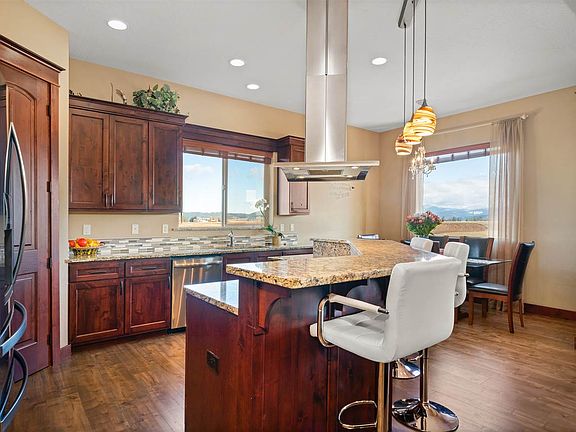 This 2014 custom built 3bed 4 bath, plus office rancher w/ walkout basement sits on 10+open acres with spectacular views of Mt. Spokane! Mainfloor has master bedroom with ensuite bathroom & exit to deck, alderwood doors, trim & beautiful custom kitchen, granite c-tops, stainless steel appliances, main floor laundry & office. Lower lever has a full kitchen, 2nd master ste, a guest bedroom & addnl bath. Radiant floors on lower level for ultimate warmth and comfort. So close to everything! Bring your horses
