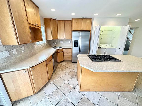 BEST PRICED HOUSE AND ON THE ISLAND NOT THE HEIGHTS UNDER $400k. EASY TO SEE-CALL,GO AND SHOW! Welcome home to Ventnor City! This sunny end unit townhouse is in Ventnor proper, within walking distance to beaches/boardwalk and is not located in Ventnor Heights! This fabulous professionally renewed 3 bedroom/2 bath townhouse is your ticket to shore living. No HOA fee and super low taxes! Easy to show, call and go! Newer and beautiful maintenance-free vinyl plank flooring throughout except for the tile baths and immaculate tile on the 1st floor living area/kitchen. Newly installed (December 2022) stainless steel appliances except for the commercial-grade Jenn Air gas cooktop (with downdraft vent). Quality Andersen slider leading to massive rear deck, Corian countertops, and gorgeous newer bath! Spacious open floor plan with huge kitchen with center island, large living room, 1st floor bedroom plus bonus loft area separate from 2nd floor bedrooms where you’ll find the master and another full bath! Separate outside access storage room for bikes, beach chairs, and seasonal items! Nice wooden front patio and back deck ideal for BBQs, entertaining, or sunbathing! At this price Selling as is buyer responsible for all inspections certifications n CO.