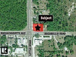 This property is located at North East corner of the signalized intersection of Little Rd. & De Cubellis Rd. in New Port Richey. There is ingress / egress via both Little Rd. and De Cubellis Rd. The property is .83 aces 162' x / 231' mol. Property is zoned C-1 in Pasco County. Far corner to traffic light. Easy in and out.