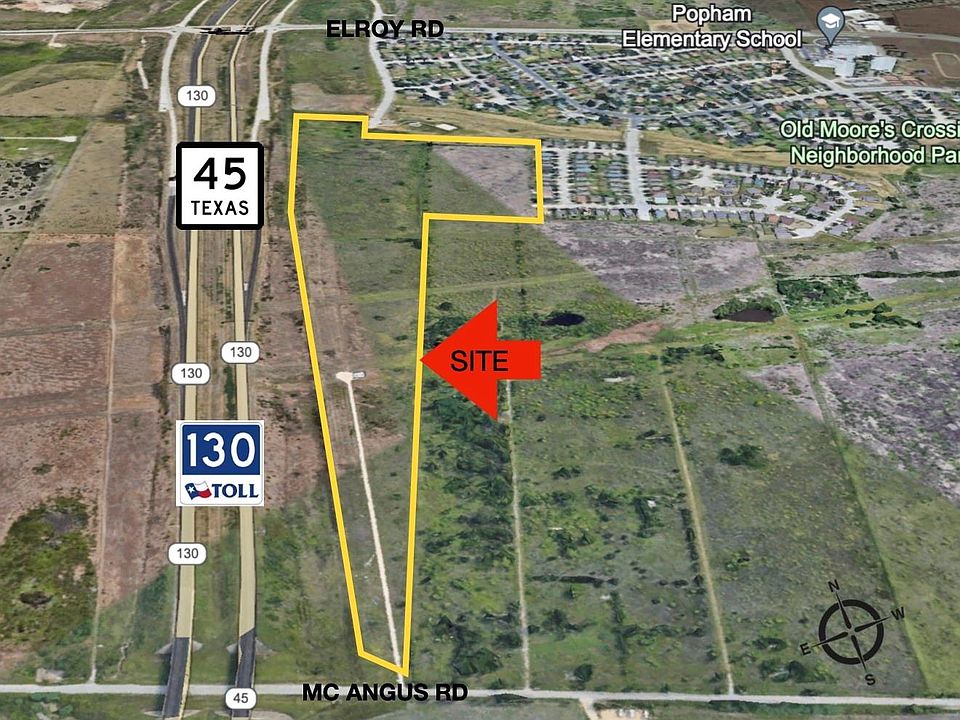 An approximately 45.38 acres located along the east side of TX130 and the end of Moore’s Crossing Blvd. This tract is primed for an Industrial/Business Park development due to its IP zoning, all utilities available through the City of Austin, and a great road network. A small portion of the Property may lie within the FEMA 100-year floodplain. Located in a Texas Opportunity Zone.