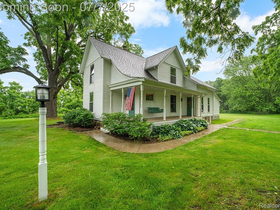 Step back in time and experience the charm of this historic farmhouse, perfectly situated on over an acre in Bruce Township—offering the benefit of low township taxes while being just a short walk from the heart of downtown Romeo Village. From the moment you arrive, you’ll be captivated by the character and curb appeal of this special property. A classic front porch welcomes you with a charming porch swing, inviting you to sit back, relax, and take in the peaceful surroundings.