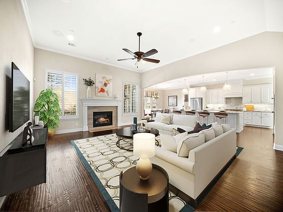 Open floor planBarbecue grillTrue hardwood floorsGranite countersStainless appliancesLuxury light fixturesCovered patio
