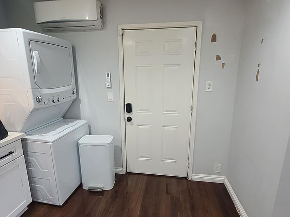 Unit has new kitchen with fridge, stove and includes all in one washer and dryer, new floors and climate control unit. SMALL private entry. NO shared space.