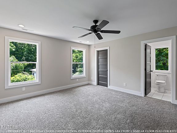New Construction. Don't miss out! This spectacular newly built Cape Cod style townhouse is fresh and modern, all while capturing a historical aesthetic that allows it to easily blend into its historical district location amidst Dandridge's many well-sought landmarks. The first thing you will notice when pulling up the wide driveway is the balconies on both levels that enhance an outdoor lifestyle and complement a classical architectural style. Rarely does a property come along that truly has it all like this one! This energy efficient home with foam insulation shows off a seamless open floor plan that guides you effortlessly from room to room. Gorgeous wood-look vinyl flooring pairs elegantly with neutral paint colors and chic light fixtures, including the stunning pendulum lighting hanging above the kitchen's spacious prep island. Savor time spent efficiently in the kitchen, where a striking white shaker cabinets and quartz countertops with a sleek contemporary backsplash sets the stage for exceptional cooking experiences, and where stainless steel appliances and breakfast bar assure every detail exudes elegance and functionality. This home has versatile spaces including a main floor bedroom that could easily serve as a home office, which would leave you with two large and accommodating bedrooms on the upper floor, each with their own luxury ensuite bathrooms and plenty of storage. As you enter the primary bedroom, your eyes will be drawn upward to the vaulted ceilings, creating a sense of spaciousness that fills the room with light. This bedroom extends out to its own private deck with treed views for enhanced privacy. Meanwhile, the ensuite bath is a dream with separate vanities and shower with stunning tilework detail. The walk-in closet will certainly leave all your wardrobe organization dreams fulfilled. The views from the windows and decks of this home are expansive, while at the same time, the home is mere minutes to Downtown Dandridge and the lake. Short term rental available. You are going to fall in love with this home! Come see it for yourself! Buyer to verify information