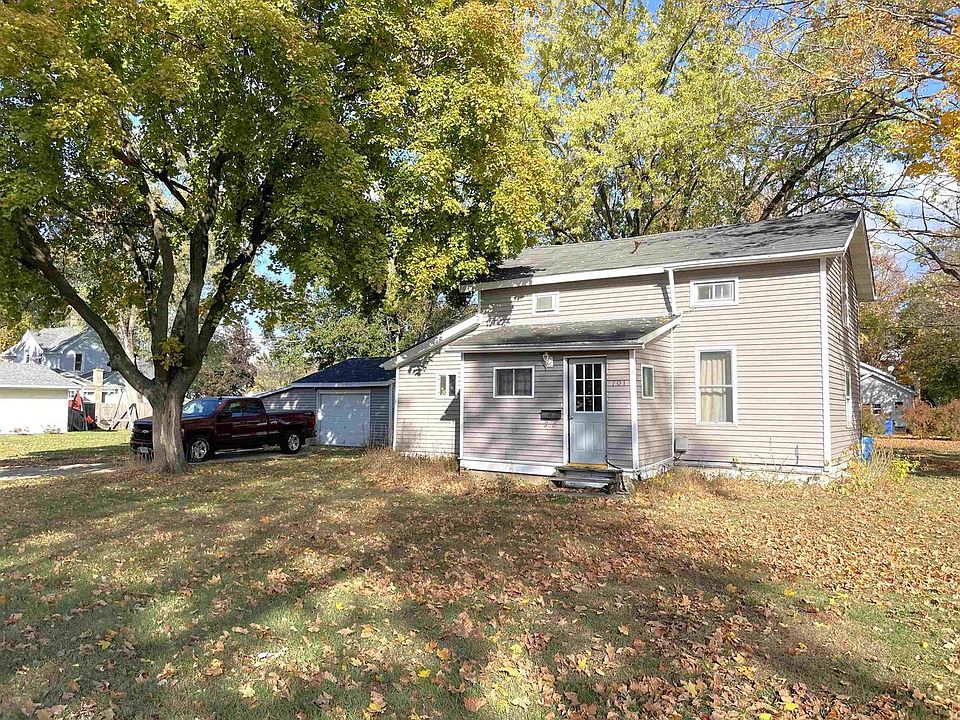 Discover this charming starter home nestled on a generous corner lot, offering ample space for outdoor enjoyment. Featuring 3 bedrooms, a full bathroom, and convenient first-floor laundry. Recent upgrades include a durable steel-shingled roof, efficient new furnace, energy-saving windows and doors, and low-maintenance vinyl siding. The oversized 1-car garage also topped with a steel-shingled roof provides extra storage and workshop potential. Ideally situated within easy walking distance to vibrant downtown, the local grocery store, post office, and scenic park. Why rent when you can own!