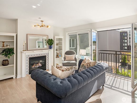 Just blocks from Seattle Center, Climate Pledge Arena, Myrtle Edwards Park, and a vibrant mix of restaurants + cafés, this top-floor Uptown/Queen Anne studio delights. West-facing windows bathe the space in sunlight, framing views of the Olympics above a lush, gardened rooftop. The open layout features a chef-inspired kitchen with granite counters, premium appliances, bar seating, and a cozy gas fireplace. A dedicated office nook provides quiet focus, while a spacious walk-in closet adds storage. The full bath includes a deep soaking tub + high-end in-unit washer/dryer. In a secure building with private parking, storage, gym, and serene community deck, this is the perfect city retreat or elegant pied-à-terre—live at the center of it all!