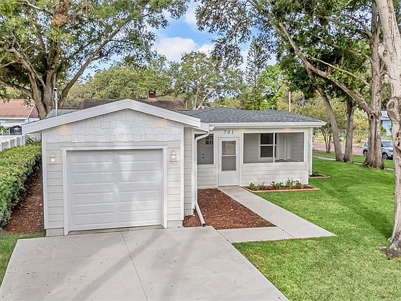 (High & Dry) Welcome to this stunning 3-bedroom, 2-bath home with a oversized 1-car garage, and large screened front porch that's perfectly situated on a desirable corner lot surrounded by beautiful mature trees and charming sidewalks. This isn’t just a flip, this is a full home renovation taken all the way down to the studs, and added square footage offering the quality and peace of mind of a brand-new home with all big ticket items are 2024 -2025 done for years. All work was permitted and passed by city of largo in the last year. Step inside to find a bright, open layout with modern finishes, abundant natural light, and thoughtful design throughout. The brand-new kitchen boasts sleek cabinetry, quartz countertops, and stainless steel appliances all matching Frigidaire package. Outside Lighting around the whole house installed in the soffit. The desired split floor plan while the bathrooms have been completely reimagined with stylish fixtures and timeless tilework. (Highlights: Every detail has been done from all new electrical wiring & panel also ran with EV outlet, plumbing, and HVAC systems to new hurricane impact windows throughout, flooring, and roof, insulation, giving you the comfort of today’s standards with the charm of a mature, tree-lined neighborhood. Enjoy the walkable sidewalks, corner lot, and the convenience of nearby shopping, dining, and parks, schools all while coming home to a property that truly is new inside and out. (Cash, conventional, FHA, VA financing)