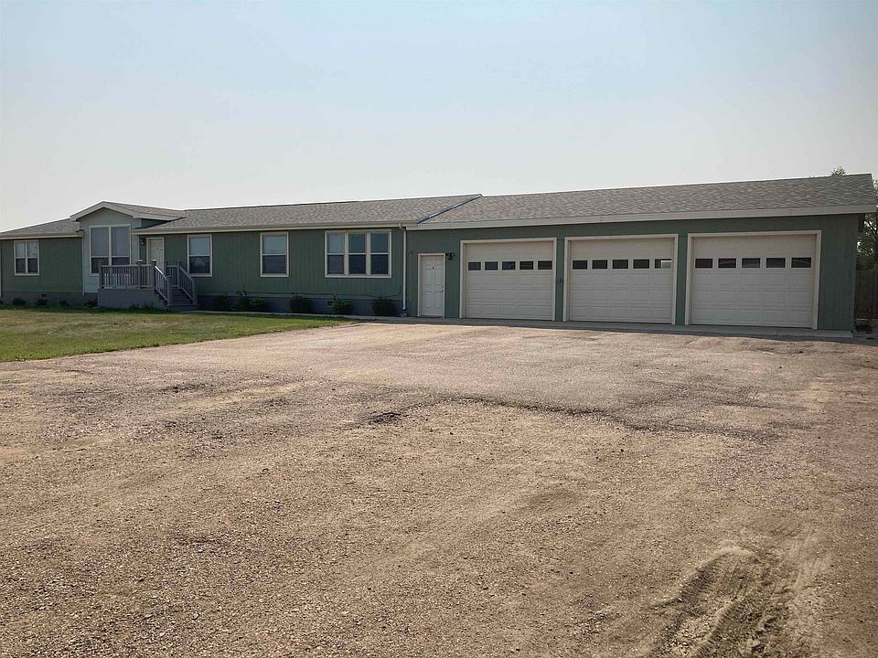 Large and beautiful home on a huge lot(2 lots)!! The kitchen has tons of cabinets PLUS a pantry...2280sq. ft. with an attached triple garage(30X42)...You need to check out all the space this home has to offer...plus all the outside space that comes with 2 lots...Sliding patio doors off the dining area takes you out to a no maintenance deck and large fenced back yard...Nice perennial plants and trees...This is electric forced air heat and central AC...Only minutes from Minot and AFB...This is nice small town living!! A must see!! Home sits on concrete pillars. PLEASE NOTE: THIS IS READY FOR A VA, FHA OR USDA BUYER FOR A MANUFACTED LOAN!! ALSO, HAS A VA APPRAISAL, REPAIRS DONE, FOUNDATION INSPECTION.