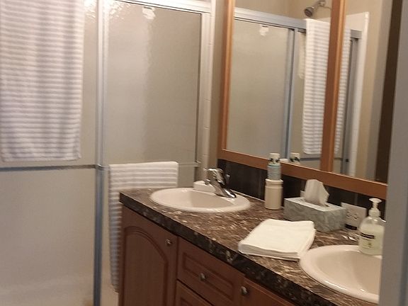 Brand new Palm Harbor Vero XIII Executive home on exterior cul-de-sac lot convenient to back entrance/exit. Gourmet kitchen with sit-down bar. Master suite with two walk-in closets. Tray ceiling in living room with transom windows for added natural light. Covered front porch, carport and storage shed. Blue siding with a splash of White on the Front Porch. Lot Rent is only $99.00 for the First 6 Months