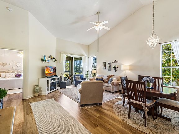 Cozy breakfast nookPrivate bathSpacious primary suiteVaulted ceilingsLight neutral decorGlass-enclosed lanaiNatural light