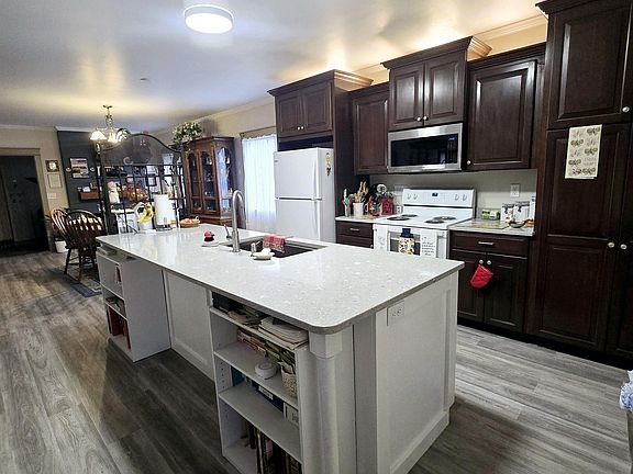 This beautiful home has an open floor plan that combines style and comfort. The kitchen features a large island with a quartz countertop, a sink, and shelves for cookbooks, making it ideal for cooking and entertaining. The dining area has a modern fireplace that adds warmth, and the spacious living room opens up to the deck, perfect for enjoying outdoor spaces. The master suite is conveniently located on the main floor, with direct access to the laundry room and bathroom. Each bedroom has a large walk-in closet, providing plenty of storage. The bathroom includes a stylish walk-in shower and attractive tile flooring. Many areas of the home have been recently renovated, including the cabinets, flooring, countertops, bathrooms, siding, windows, roof, electrical systems, plumbing, deck, and the application of fresh paint throughout the house. New doors have also been installed. The property is on a large corner lot measuring 137 by 120 feet, and the garage measures 12 by 20 feet, offering ample space for vehicles and storage. The seller has replaced the furnace, and central air conditioning will be installed soon. Additional plumbing work has also been completed.