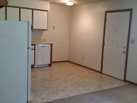 Oak trimExtra-large closetWhite vinyl flooringCentral acLarge open lr-kitchen areaKitchen with all appliancesWhite cabinets