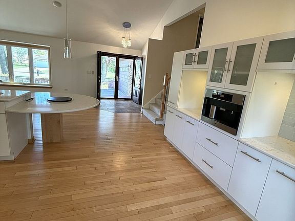 Spacious split-level home with sub-basement. The open-concept kitchen and living room feature hardwood floors, vaulted ceilings, recessed lighting, and direct access to the deck. The kitchen is equipped with high-end appliances including Sub-Zero, Miele, Bosch and Thermador; built-in oven and microwave, a large island with integrated table plus a built in coffee bar. A main floor addition provides a large laundry room and a spacious primary suite with cathedral ceiling, skylight, abundant windows, sliding door to the deck and an accessible bathroom with dual sinks, an oversized walk-in/roll-in shower, skylight, linen closet, and walk-in closet. The second floor offers three bedrooms and a full bathroom. The lower level includes a cozy family room with painted paneling and exposed beams and a cozy fireplace wall, an additional bedroom, full bath and garage access. The unfinished sub-basement is clean and dry making it ideal for storage or future finishing. Recent updates include brand-new carpet throughout and fresh neutral paint. Custom remote control blinds throughout the first floor. Whole house generator. Located near top-rated schools, transportation, and shopping.