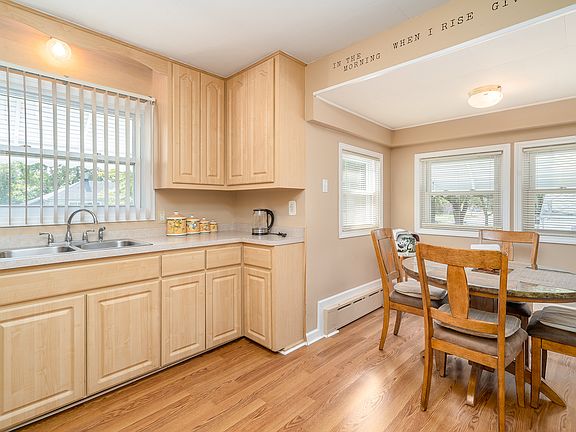 This amazing & spacious bungalow has been lovingly maintained & features: A cozy enclosed front porch to greet you; Sun-filled Living room; Formal dining room with wood laminate flooring; Updated kitchen with 42" cabinets, stainless steel refrigerator & laminate flooring; Nicely updated full bath with custom ceramic tile; Tall ceiling throughout first floor; 2 Large main level bedrooms (Bedroom #2 with double closets); 2 additional bedrooms on 2nd floor; Full, finished basement that offers a large family room with new vinyl flooring, 2nd kitchen, 5th & 6th bedroom & bath (great for related living & bar that's great for entertaining; Breezeway to the 2 car garage & fenced yard with covered patio! Newer roof & windows too!