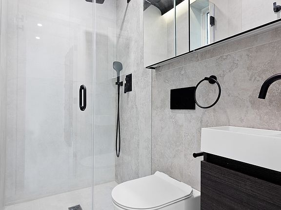 The apartments feature brand-new, top-notch finishes and state-of-the-art appliances. The kitchen features ample cabinet space and is equipped with an integrated fridge, freezer, and dishwasher, providing room for a four-seater dining table or an island. Both bedrooms fit queen beds. The building features laundry facilities, a stunning and massive courtyard with Wi-Fi access, and a Storage unit included in the rent. The apartment is located on the first floor in a well-maintained walk-up building.