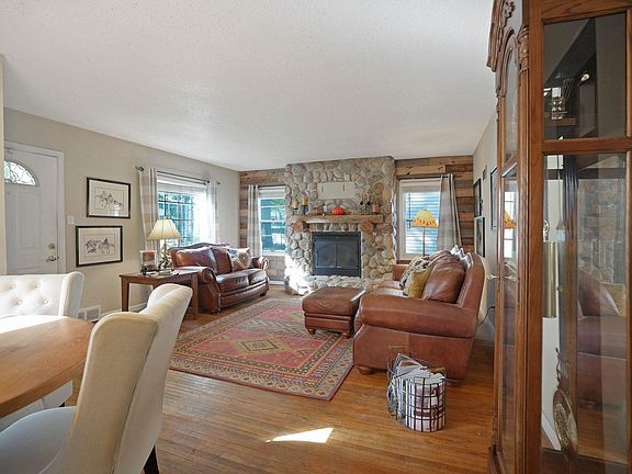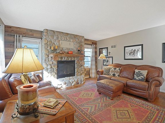 Step inside this 3-bedroom, 1-bath story-and-a-half home filled with warmth, charm, and character. The inviting living room features hardwood floors and a stunning stone fireplace that serves as the perfect focal point, adding to the home’s rustic, cabin-like feel. Two bedrooms are located on the main floor, with a spacious master bedroom upstairs offering privacy and comfort. A convenient breezeway connects the home to the attached one-stall garage, providing sheltered access year-round. The walk-out basement offers great potential for additional living space or storage. Enjoy outdoor living on the tiered deck overlooking the large backyard—an ideal setting for relaxing, entertaining, or simply enjoying nature. This character-filled home blends comfort and charm in a peaceful setting—come see what makes it so special!