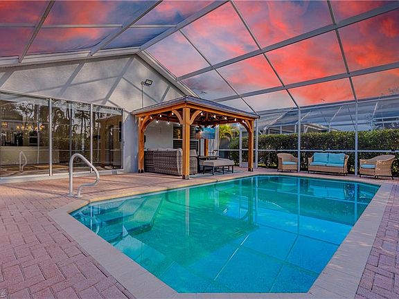 Price Reduced to SELL! Experience the ultimate Florida lifestyle in this stunning single-family pool home in the desirable Maplewood community, less than 5 miles from Downtown Naples’ famous 5th Ave South, world-class beaches, shopping, and dining. This move-in-ready, 3-bedroom, 2-bath home is packed with modern updates. Sleek vinyl wood flooring flows throughout the open floor plan, with vaulted ceilings that make the space bright and airy. The kitchen is a chef’s dream, featuring stainless steel appliances, grey & white cabinetry, and gorgeous quartz countertops. The master suite offers dual sinks, a frameless glass walk-in shower, and a custom walk-in closet with extra wardrobes. Step outside to your private oasis: a screened lanai with a heated pool and stunning western exposure, offering beautiful sunset views over the protected preserve. The charming furnished gazebo is equipped with LED lighting, an outdoor TV, and ample covered seating—perfect for entertaining or relaxing. Additional features include an oversized brick-paved driveway, NEW A/C and Roof (2018), no flood insurance required, and no past storm damage. Located near Livingston & Radio Rd, you’ll have easy access to Naples’ best dining, shopping, golf courses, I-75, and Naples Airport. Maplewood offers family-friendly amenities, including a community pool and park, and low HOA fees that cover fiber-optic cable and internet, making this an excellent investment property. Homes like this don’t come around often so make this your home sweet home in Naples today!