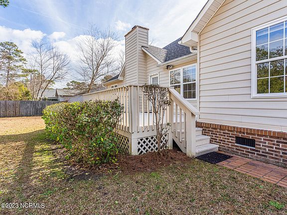 Looking for a split floor plan house with large rooms and bright natural lighting in an established area priced below market value? 701 Duck Downe is it! Located off College Road in the Monkey Junction area of Wilmington on a quiet cul-de-sac. This large corner lot is just under 1/2 an acre with NO HOA or city taxes! The large entrance foyer opens into a spacious living room with wood burning fireplace overlooking the private backyard. The eat in kitchen and dining room are perfect for everyday living and entertaining. The double stacked windows allow the natural light to shine through. The large primary bedroom has a cathedral ceiling and boasts of an oversized walk-in closet and soaking tub. The finished room over the garage can be used as a 4th bedroom or the bonus room for the family. The side load 2 car garage is ample for parking and storage. There is easy access to attic storage for all the extra goodies! This is a fabulous location close to beaches and shopping areas!