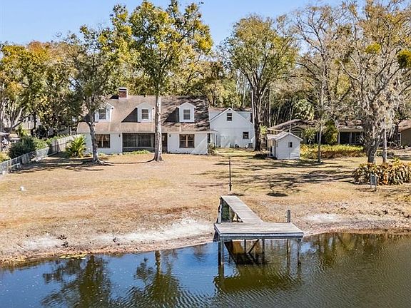 Nestled in the HEART of LUTZ, where homes RARELY come to market - this charming LAKEFRONT estate offers a peaceful retreat without sacrificing the convenience of the city. Situated on a generous 1-ACRE parcel with PRIVACY and space galore - this property boasts a custom built, one owner home, PLUS a 3.5-CAR GARAGE with an “APARTMENT” above it – all set against the backdrop of beautiful Tiffany LAKE. This property truly stands out with its custom-built features, offering a unique charm that sets it apart from the “cookie-cutter” homes of today. Spanning 3,247 square feet, this METICULOUSLY MAINTAINED home truly showcases CLASSIC CHARM and too many distinctive ARCHITECTURAL DETAILS to list! The BRICK CIRCULAR DRIVEWAY offers a stunning first impression and abundant parking for all. Upon entering the home, your eyes don’t know where to focus first – the STUNNING double-sided BRICK FIREPLACE, the STAIRCASE with its original wood stair rail, or the double FRENCH DOORS leading to the LANAI offering a beautiful view of the LAKE or how OPEN & ROOMY the living space is! Retreat to the FIRST-FLOOR spacious PRIMARY SUITE - at almost 15’ x 24’.6”, it offers ample room for relaxation and personalization, it boasts a picturesque view of the LAKE, cozy BRICK FIREPLACE, large closet, ensuite bathroom with a garden tub & separate shower, and a flex space that could serve as a vanity or a small workspace. The HUGE, classic-style kitchen with stunning lake view offers endless cabinet & countertop space, a central ISLAND, and LARGE EAT-IN NOOK! Off the kitchen, the dedicated FORMAL DINING ROOM is perfect for special occasions. Upstairs features a smart, comfortable layout with a spacious full bathroom, TWO EXTRA-EXTRA-LARGE BEDROOMS seamlessly connected by a central BONUS ROOM – perfect for a playroom, home office, teen hangout, art/craft studio...the ideas are endless! The views of your MASSIVE BACKYARD and the BEAUTIFUL LAKE are certainly a highlight in every room of this home! THE TRUE GEM of this estate is the spacious PRIVATE “APARTMENT” over the 3.5-car garage, boasting a large full bathroom, kitchenette area, and ample living space - ideal for guests, workspace, or IN-LAWS! Enjoy all the PEACE AND TRANQUILITY here - relaxing on your lanai while cooking out on your built-in Jenn-Air grill…or relaxing on YOUR PRIVATE DOCK on the LAKE!! Bring your BOAT, kayak, or FISHING pole! You will LOVE the PRIVACY while remaining a short drive to all conveniences – less than 15mins to the Veterans Expressway, less than 15mins to I-275, 10mins to N Dale Mabry Hwy, and 10mins to SR54! INCREDIBLE LOCATION!!! NO deed restrictions, NO HOA, and NOT in a flood zone! Don’t miss this rare opportunity!