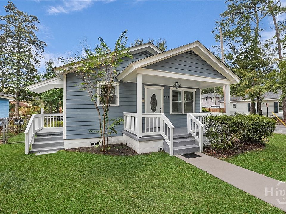 Charming, fully renovated Bungalow near Daffin Park! This adorable corner-lot home blends historic charm with modern upgrades and features off-street parking plus a fenced backyard with alley access—perfect for relaxing or entertaining. Recent updates include HVAC, roof, water heater, energy-efficient windows, smooth ceilings and doors (all just 2 years old). Inside, enjoy a bright and airy layout with original hardwood floors, newer tile in the kitchen & bath, window blinds throughout, and designer lighting. The stylish kitchen offers stainless appliances, quartz countertops, and new cabinetry. The renovated bath features a marble-top vanity and custom walk-in shower. The backyard offers flexibility—transform it into a courtyard oasis or use it as a second driveway. Ideal for a small family, SCAD students, or as a turnkey investment property. This home offers no HOA, sits outside the flood zone, & just minutes from Daffin Park, shopping, and local’s favorite restaurants & Cafés.