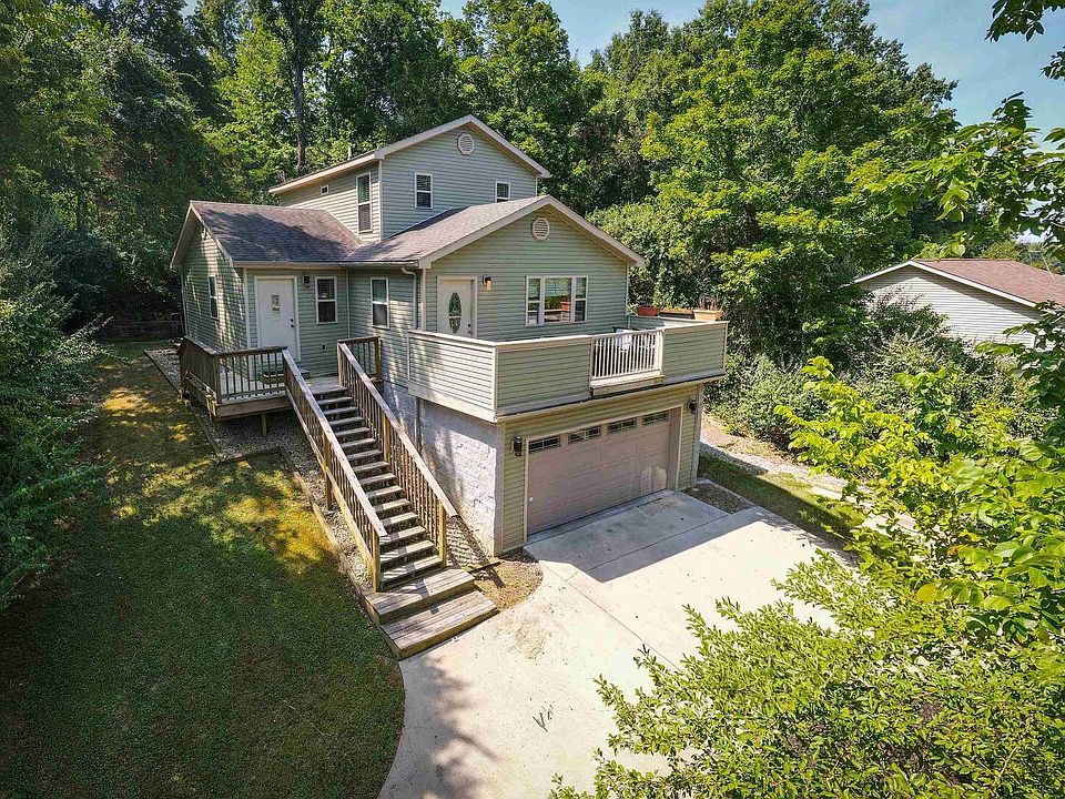Tucked away on a quiet dead-end street near campus, this custom one-owner home is built into the hillside, offering wooded views and a sense of privacy. Enjoy the outdoors from the large front balcony or the spacious back deck. Inside, the main floor features bright and open entertaining spaces, a well-appointed kitchen with all appliances included, a main-floor bedroom or office, laundry room, and newer fixtures throughout. Upstairs, you'll find the primary suite and an additional guest bedroom. The pull-under 2-car garage offers extra storage, plus a new sewer line for peace of mind. Clearwave fiber internet is available, and the washer, dryer, and select furniture are negotiable-making this move-in ready home an ideal choice for comfort and convenience.